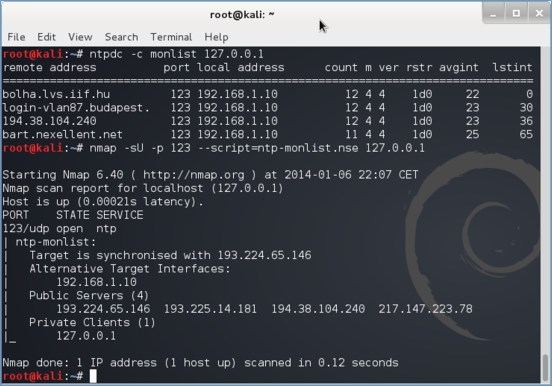 nmap -sU -p 123 --script=ntp-monlist.nse <IP>